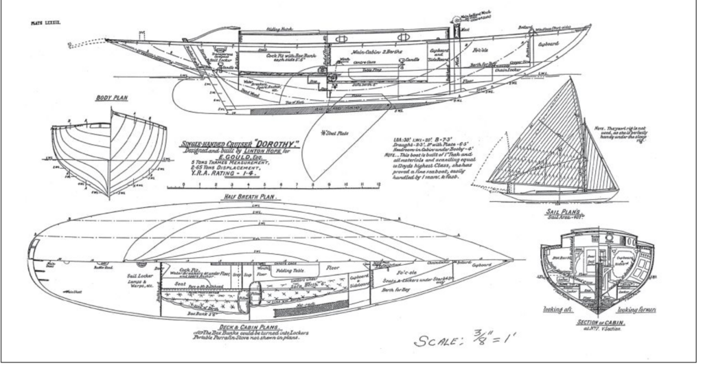 L’histoire débute à la fin du XIXe siècle lorsqu’un avocat de 28 ans, William Langley du Victoria Yacht Club, envisage de se faire construire une élégante machine de course. Il achète une copie du Manual of Yacht & Boat Sailing de l’architecte britannique Dixon Kemp qui fait alors autorité dans l’univers naissant de la régate à la voile pour la qualité de ses dessins. Kemp est aussi le fondateur de la Royal Yachting Association. Il trouve dans ce manuel les plans d’un sloop de course de 30 pieds par Linton Hope, Dorothy. Hope est lui aussi un architecte naval qui possède son propre chantier, le Thames Yacht Buildings Company. Dorothy a été dessiné et construit en 1894 pour un de ses clients. Linton Hope n’est pas non plus le premier venu. L’architecte britannique a décroché la médaille d’or aux Jeux Olympiques de Paris en 1900 dans la catégorie d’un tonneau. Hope a consenti à publier ses plans dans la huitième édition du Manual of Yacht & Boat Sailing en pensant faire une bonne publicité pour son chantier.